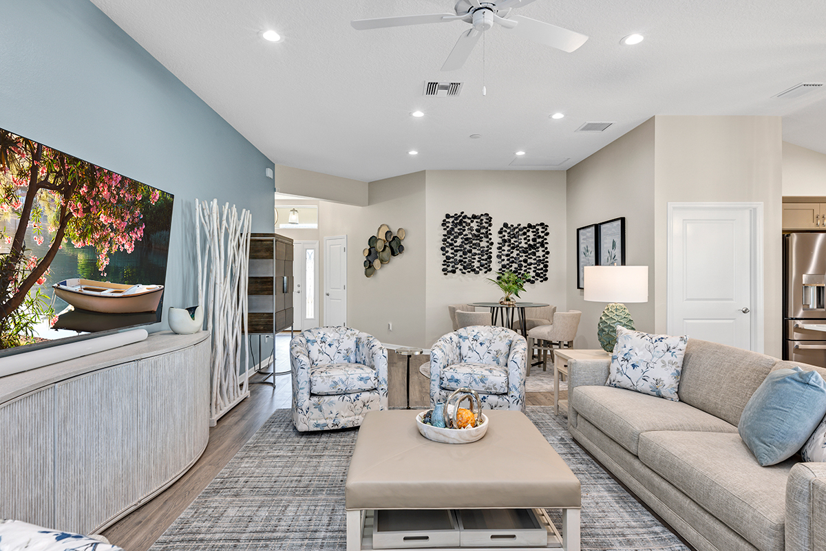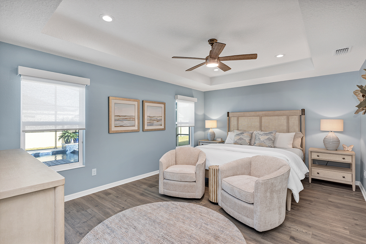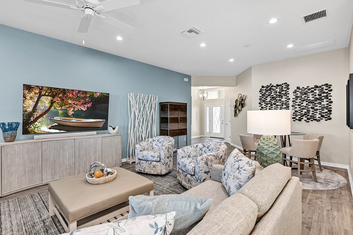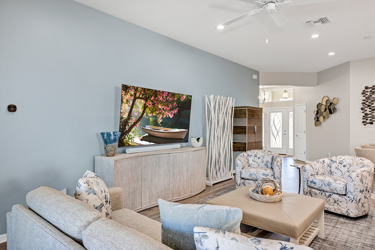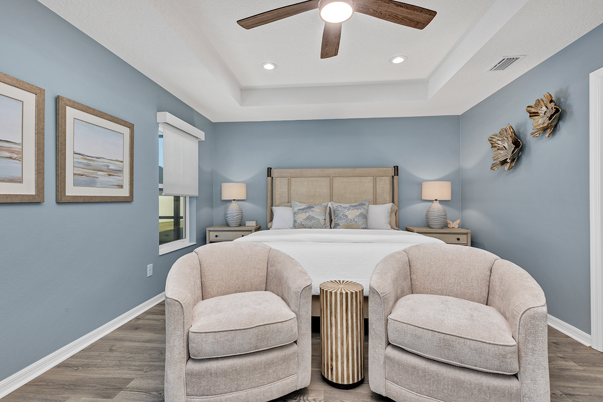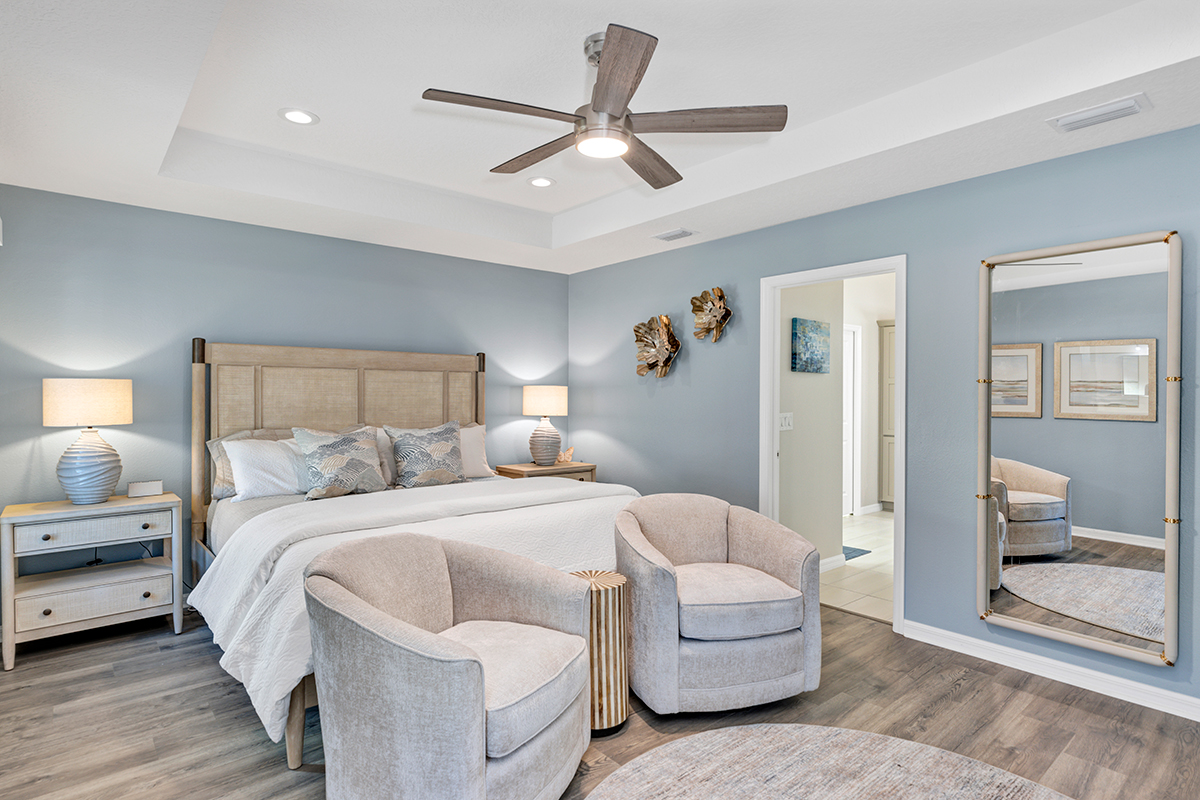 Interior designer, Leasa Erkiletian, worked to create this beautiful transitional coastal retreat in the Lakes of Mount Dora! After living in Naples for several years, our customer wanted an interpretation of coastal that translates in their Central Florida home. Clean lines, a soft color palette, and a mix of textures create a peaceful retreat for one very happy couple!