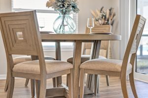 Interior designer, Leasa Erkiletian, is thrilled to unveil a project in Blue Lake Estates. Our customer found herself going through an unexpected midlife transition. The design goal was to create a Zen like environment for her to embrace the next chapter in her life. Her love of yoga helped inspire a design that is very warm and peaceful. Making her feel more centered. Mixed neutrals and heavy texture define the look. Living room and dining room pieces are sourced from our Bassett Benchmade collection, and the home office/yoga room represents the Melange collection by Hooker Furniture. The bunching etageres, media console and bunching cocktail tables were sourced from Universal Furniture. We wish our customer much peace and happiness as she embarks on this next journey in her life!