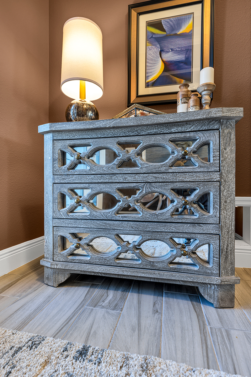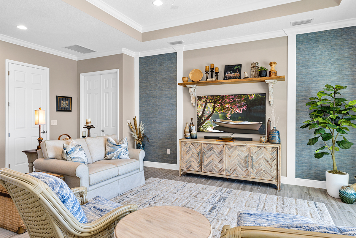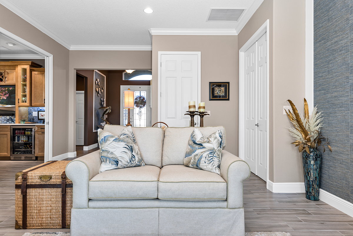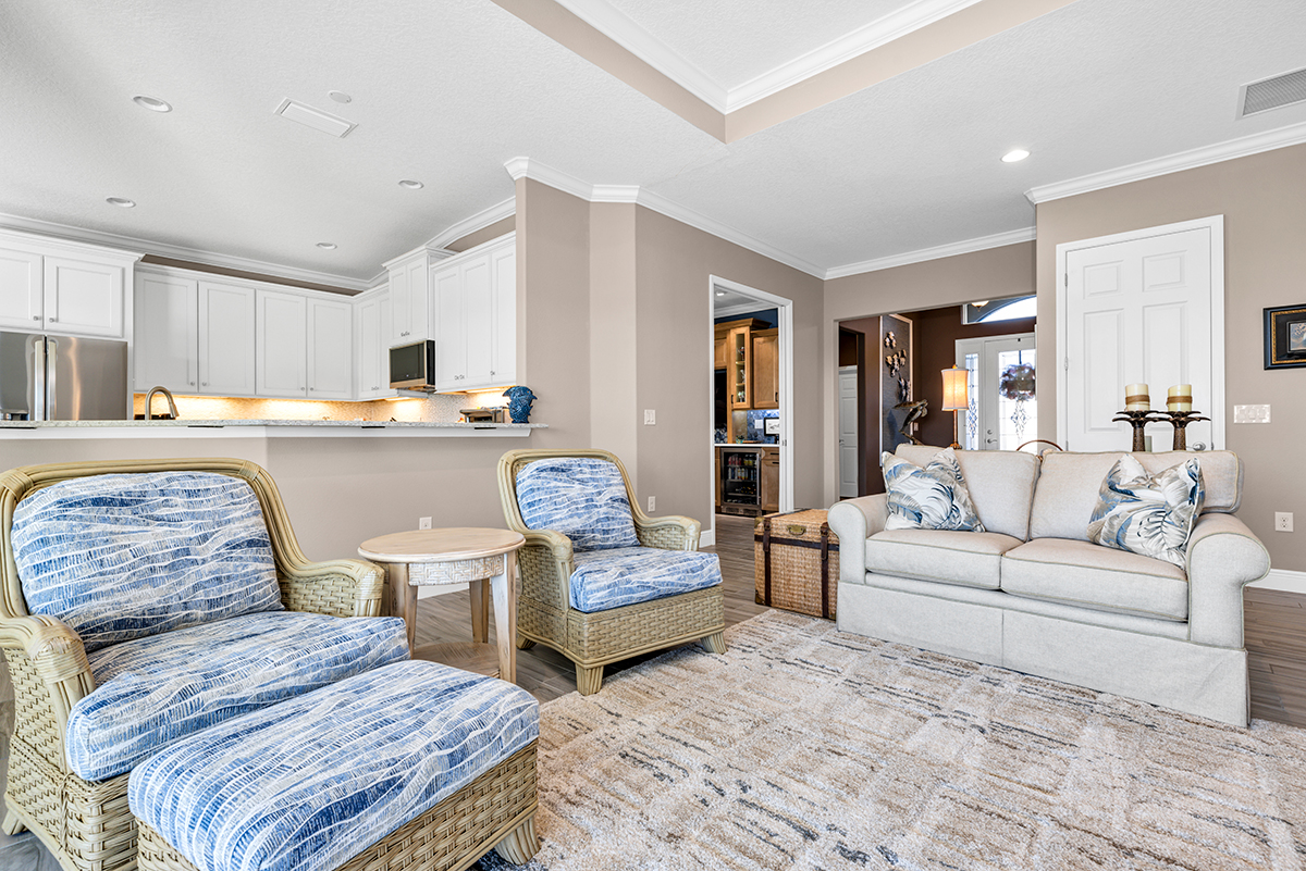 Carleton and Dorothy B. of The Villages, live in a beautiful custom home surrounded by towering pine trees outside and family treasures inside. They were looking for a traditional and cozy design.